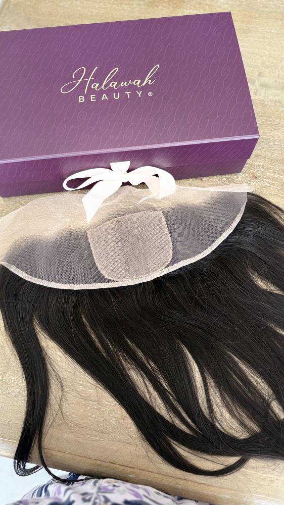 مقدمة فروة طبيعية من Halawah Beauty – تكثيف مثالي لمقدمة الرأس بمظهر واقعي وشعر طبيعي 100%.