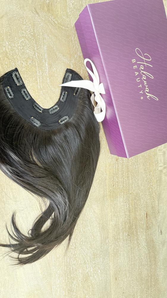 مقدمة U من حلاوة بيوتي قطعة شعر طبيعية 100% بتصميم ذكي… تغنيكِ عن تعب التركيب الكامل.